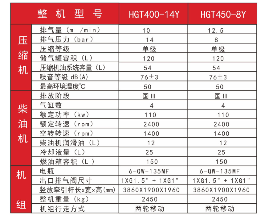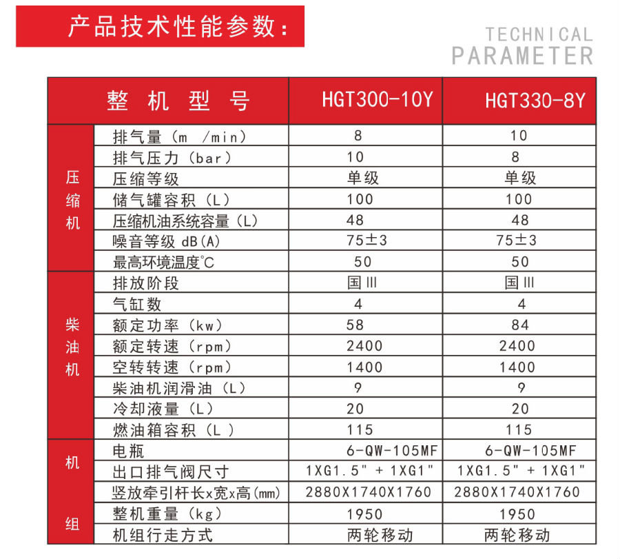 柴驅-HGT兩級壓縮高壓系列(雙工況)HGT700、HGT800、HGT950 柴移