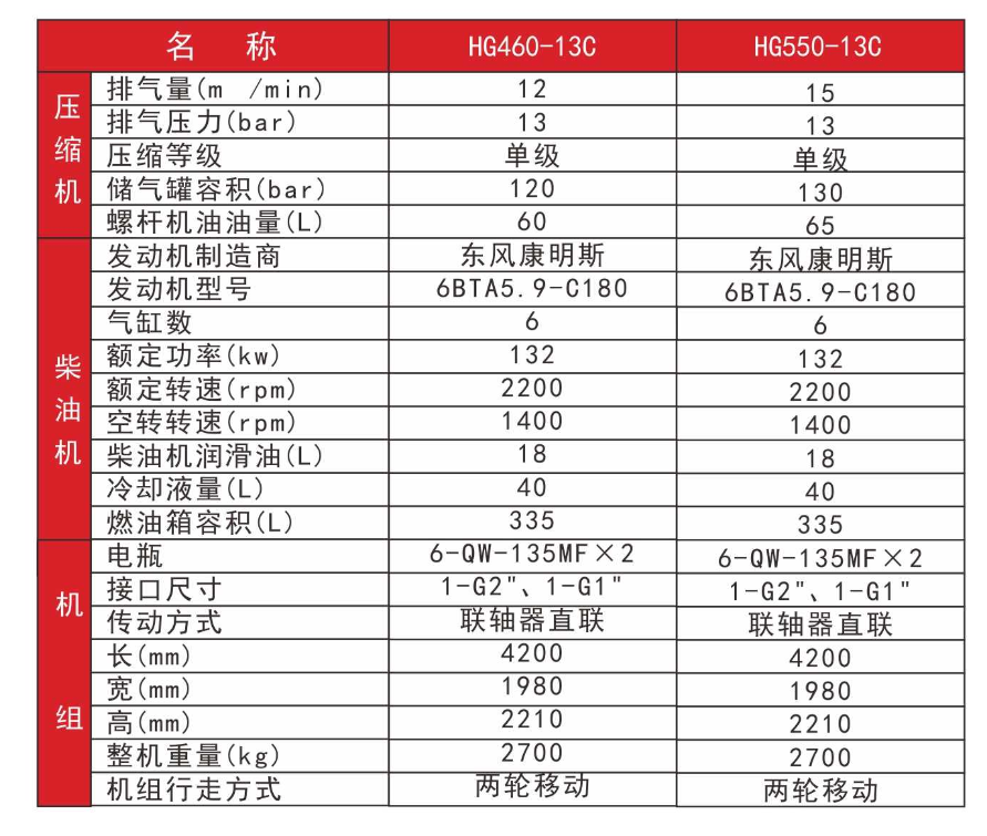 柴驅-HG系列中低壓移動空壓機(兩輪)