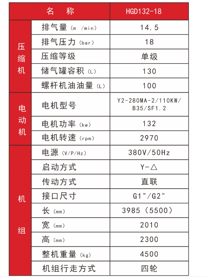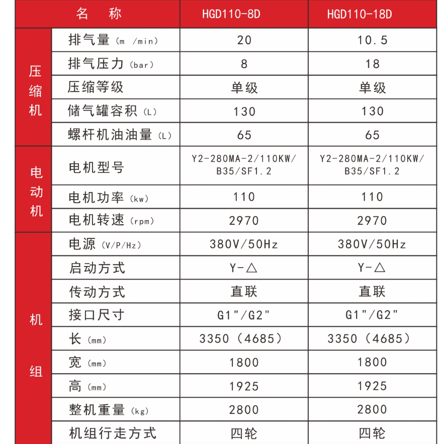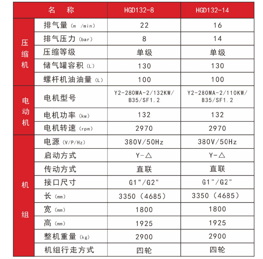 電驅(qū)-HGD中型移動空壓機系列 HGD110、HGD132 電移